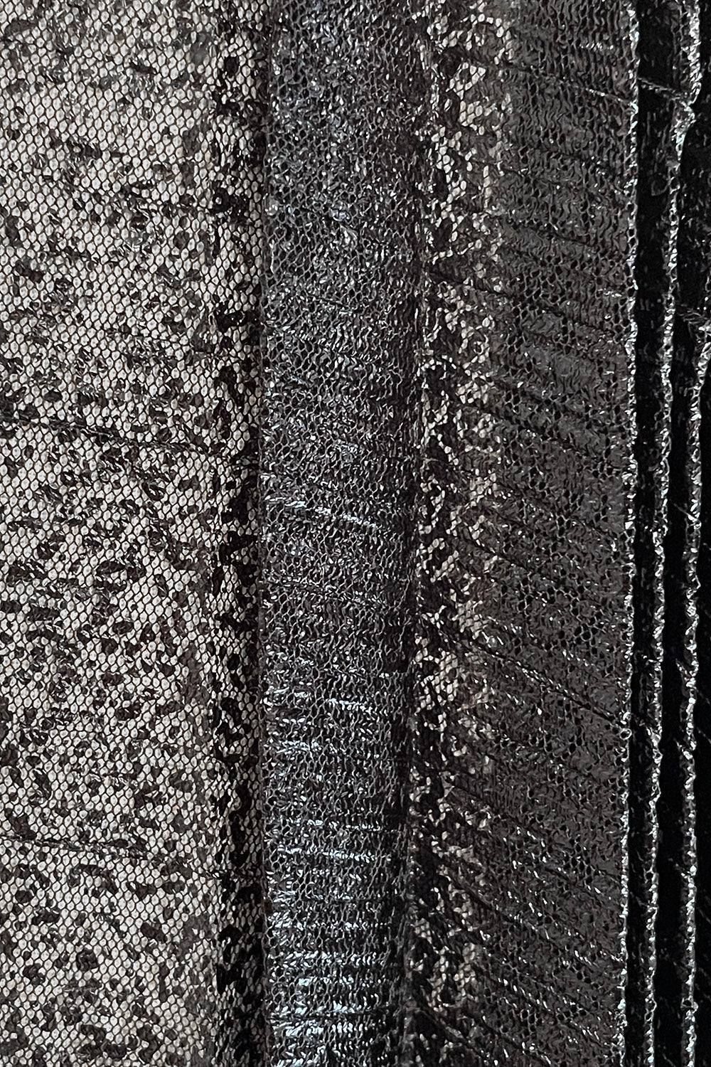BODY: 100%PL CONTRAST: 100%SILK. Runs true to size. MODEL IS 5'9". One size fits all.