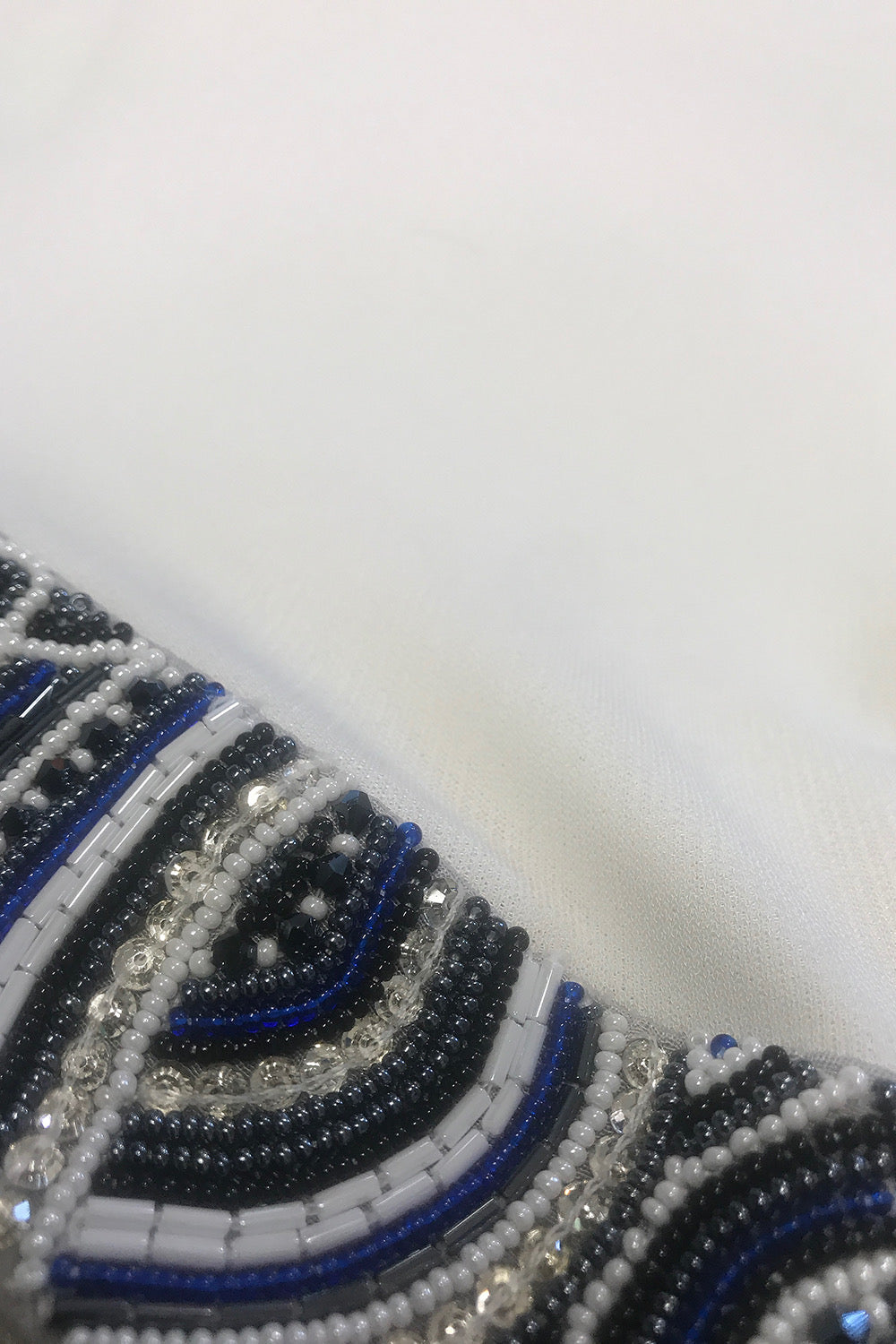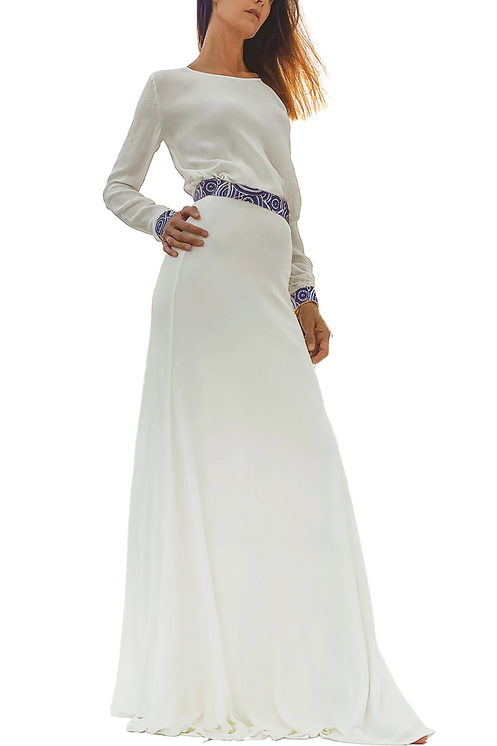 The follow-on from our Almost Famous dress, our high-waisted skirt beautifully elongates your figure. The fully lined skirt is made from a crepe jersey with a hand-embroidered waistband in our original motif with Swarovski beads placed throughout to add a subtle sparkle.